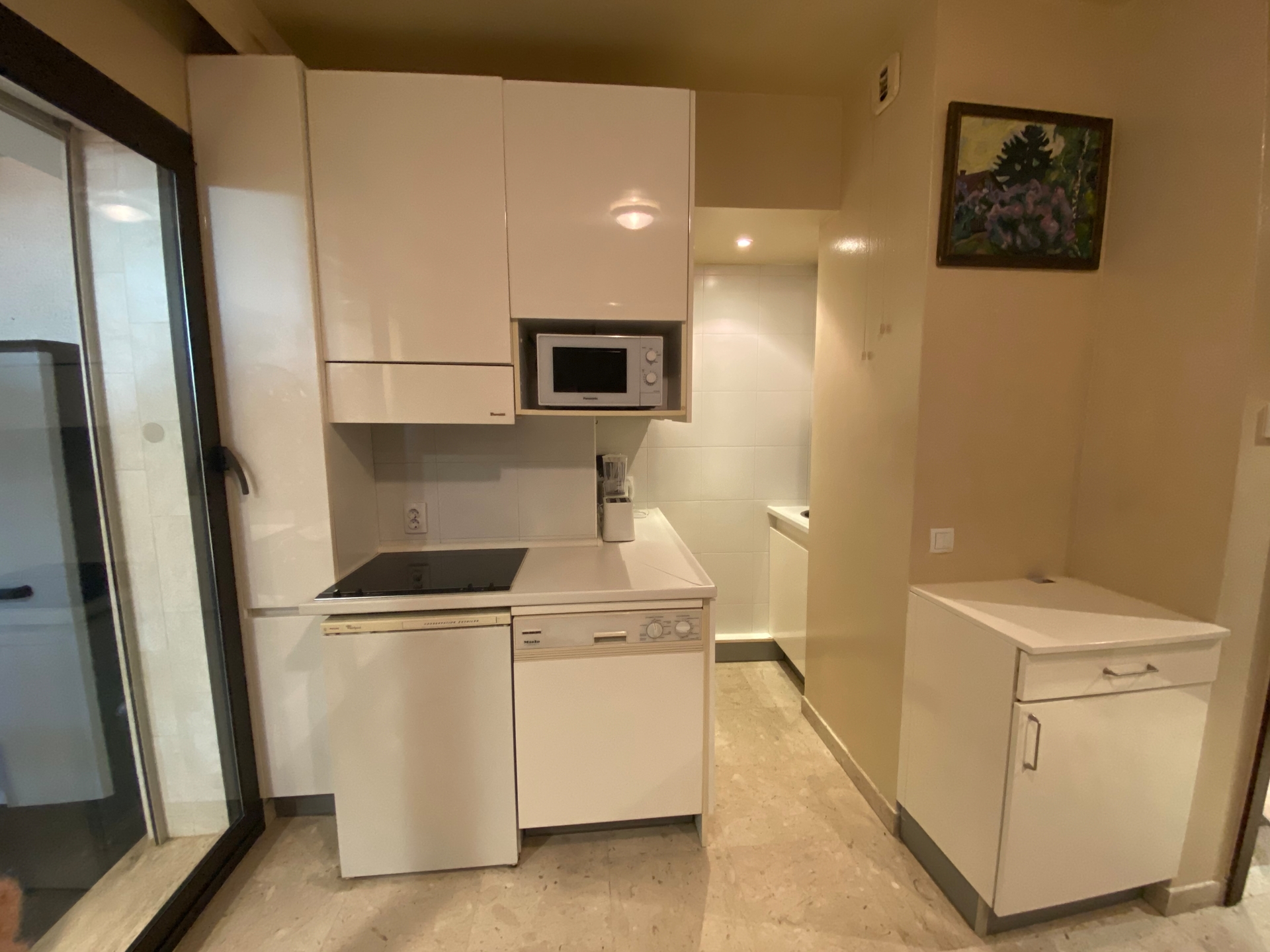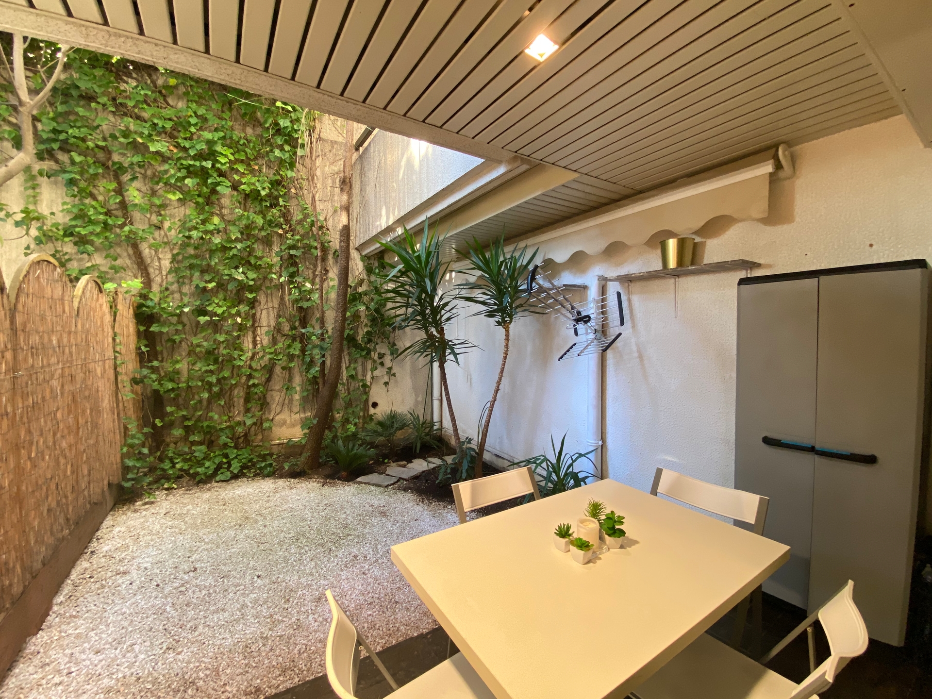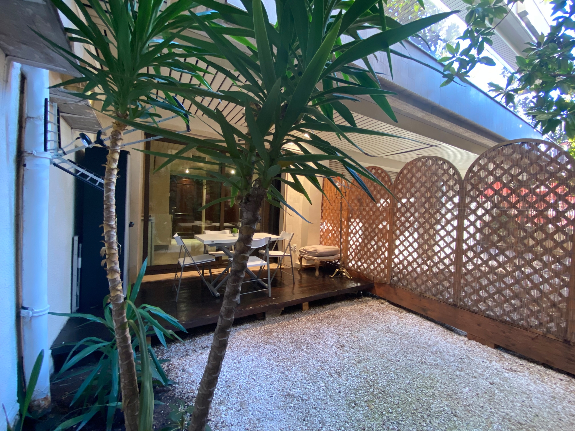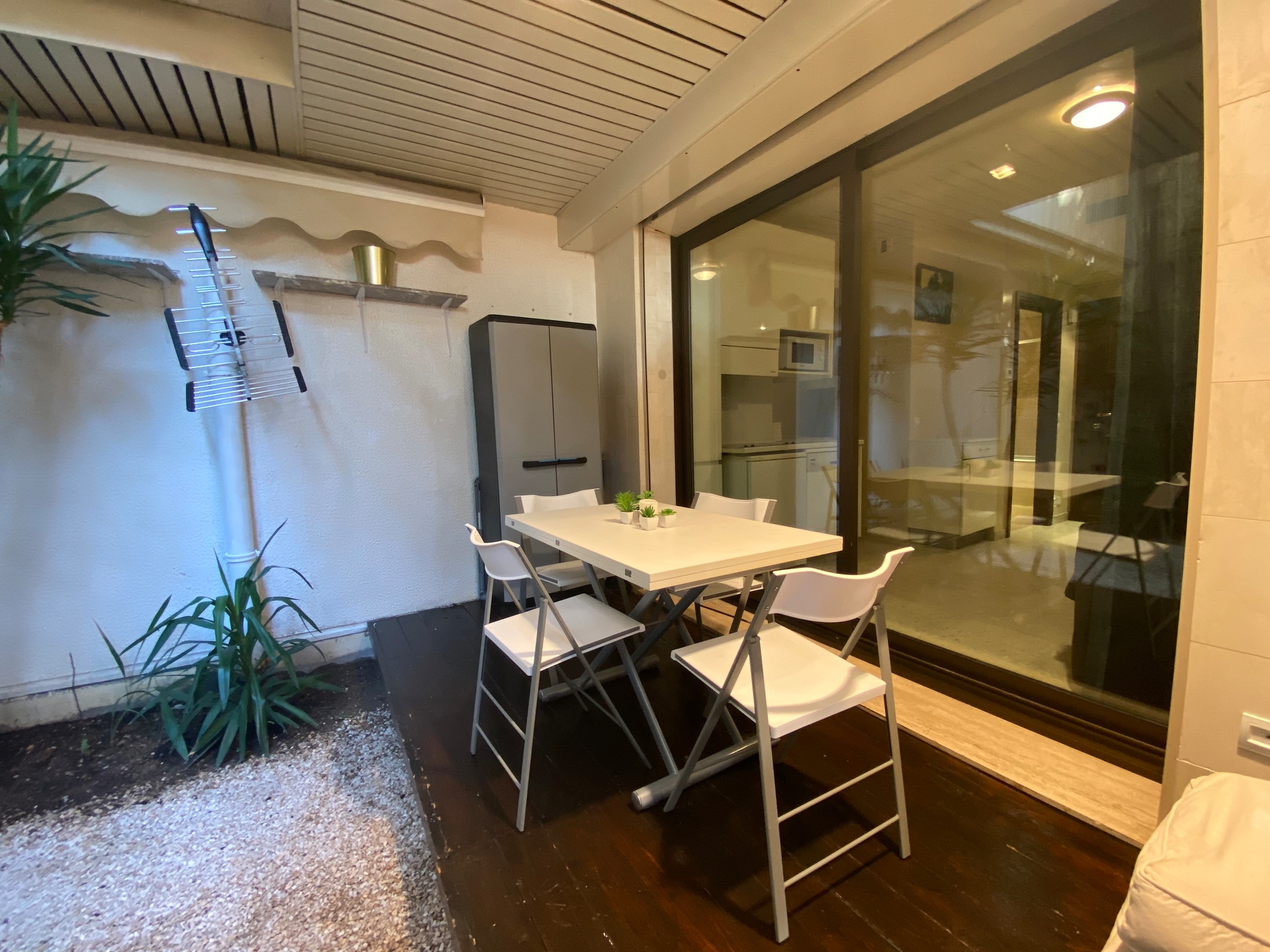 1 entrance, 1 main room with equipped kitchen, 1 large bathroom in marble and 1 private garden. Reversible air conditioning / heating.