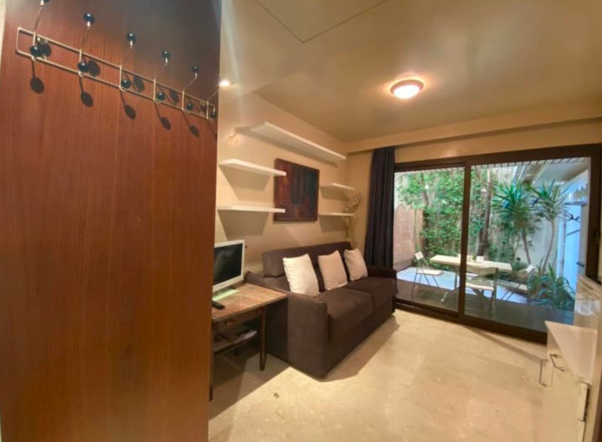 Grazioso monolocale arredato in una zona tranquilla con giardino, che offre un ambiente ben pensato e facile da vivere. La sala principale, luminosa e funzionale, è accompagnata da una pratica zona cucina, perfettamente integrata nello spazio. L'accesso diretto al giardino porta un vero vantaggio, permettendo di godere di un piacevole esterno. Una sistemazione semplice e confortevole, ideale per chi cerca un ambiente tranquillo e pratico per la vita di tutti i giorni.