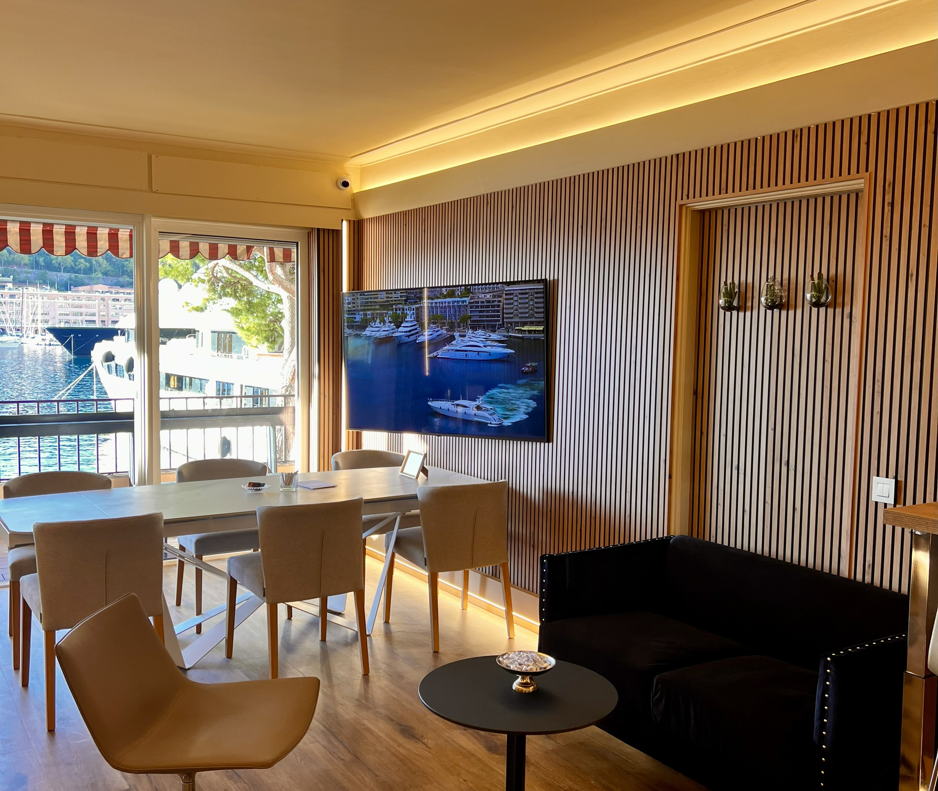 Questo spazio di lavoro condiviso si trova nel porto di Monaco vicino allo yacht club