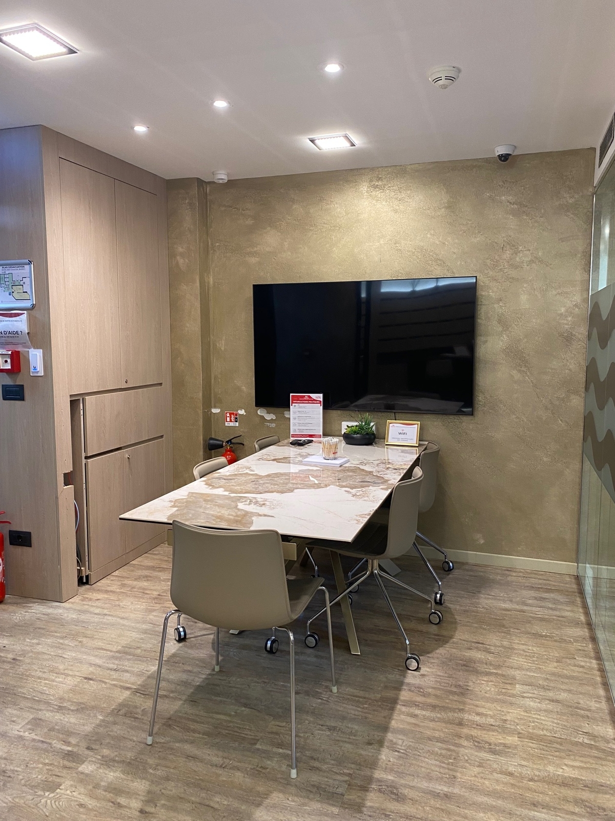 Reception posta, reception fisica e telefonica, sala riunioni per 16 persone accessibile su prenotazione, touch screen, pulizia quotidiana, area lounge, terrazza.