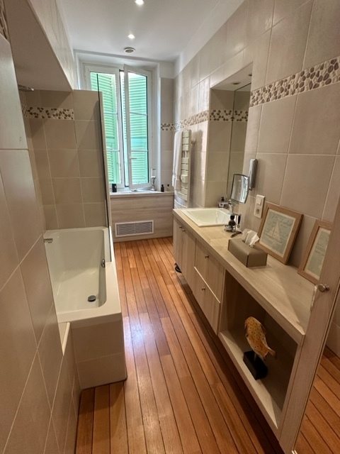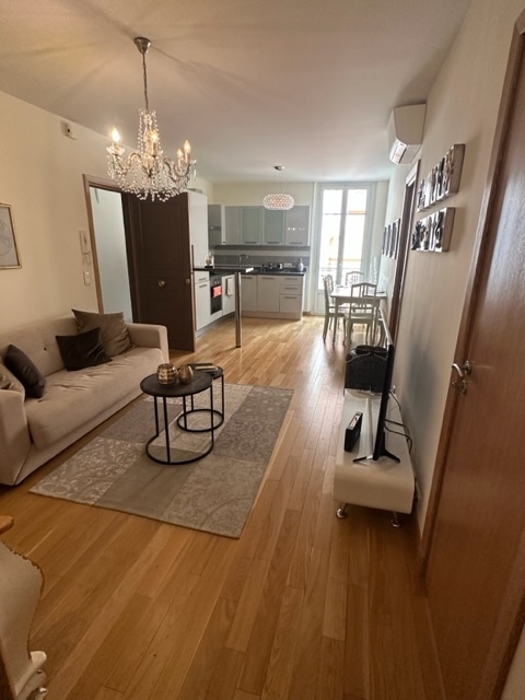 Soggiorno con cucina americana, 2 camere, bagno, armadiature.