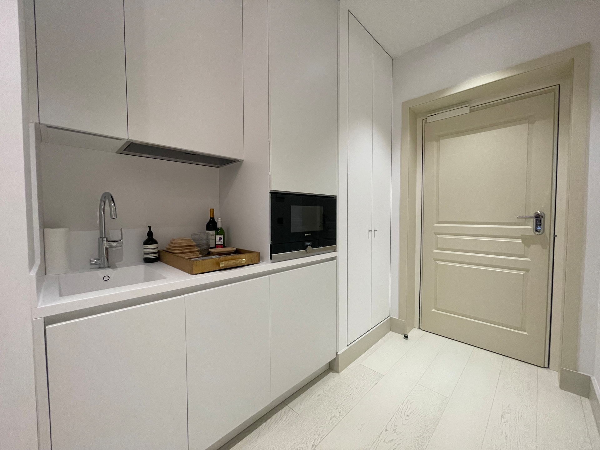 Questo monolocale dalle generose proporzioni ha una finitura squisita che include soffitti alti, pavimenti piastrellati di alta qualità, elettrodomestici da cucina di qualità e una doccia a casa di dubbio. L'appartamento ha una cucina open space e moderna, un bagno ben arredato, un soggiorno e un splendido patio.