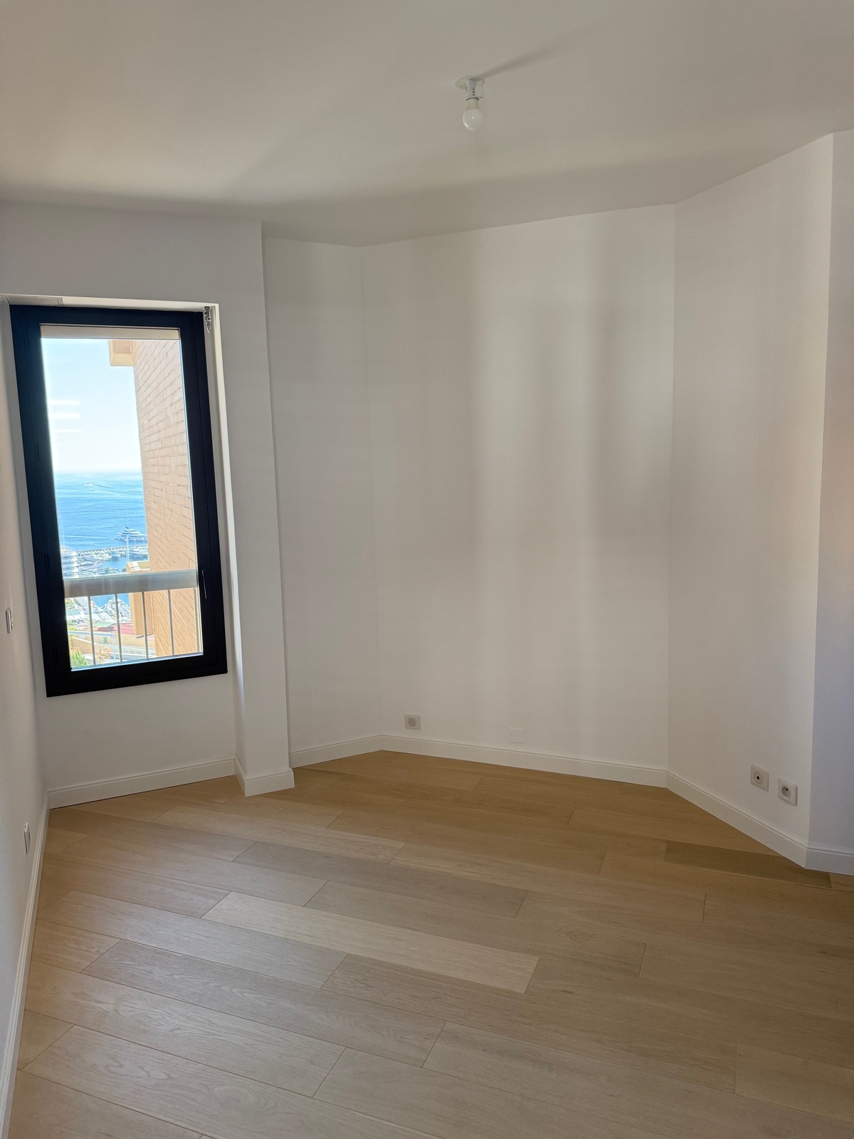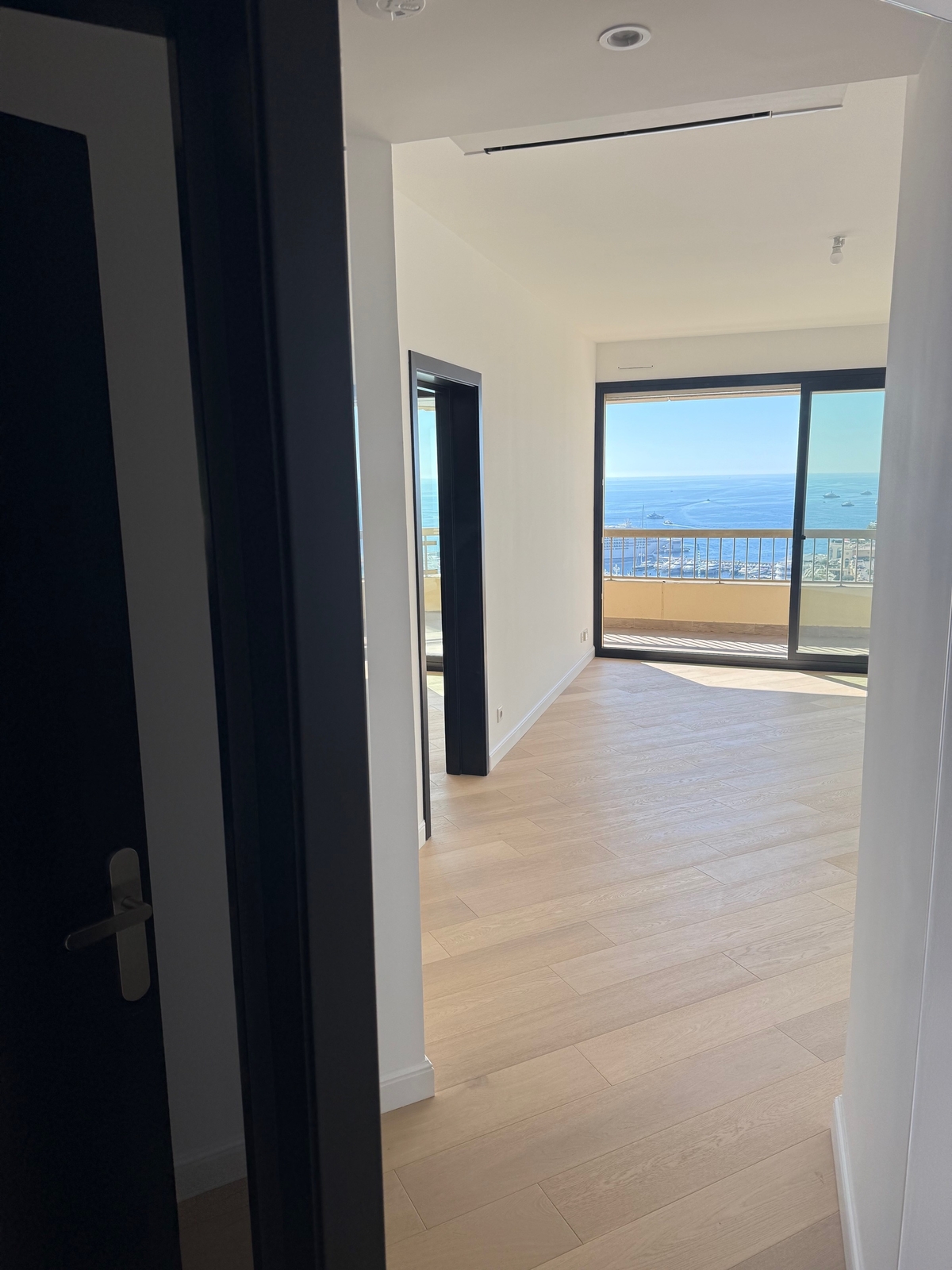Very bright 2 bedroom apartment, completely renovated with luxurious finishes, air-conditioned, which enjoys a panoramic view of 180 ° on the Principality, Port Hercules, the sea and the Rocher, with direct access to the Port of Monaco by elevator.