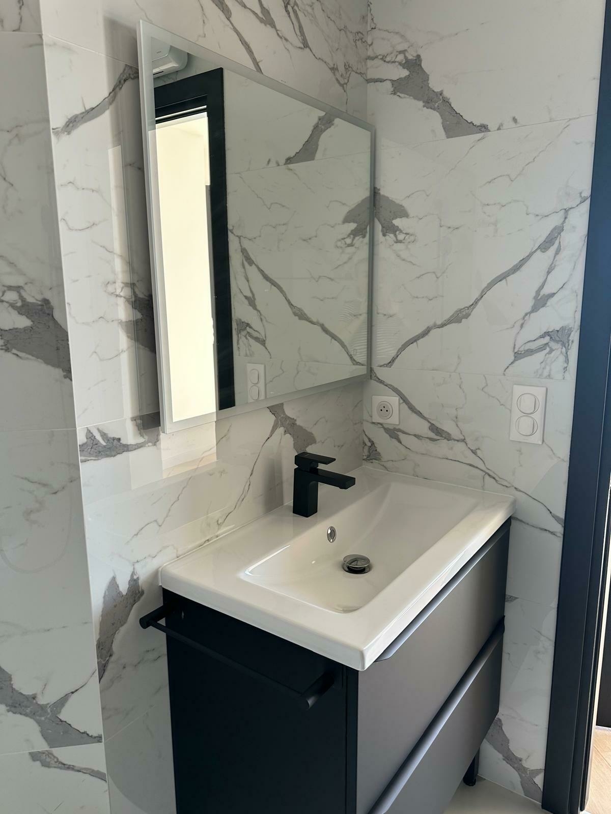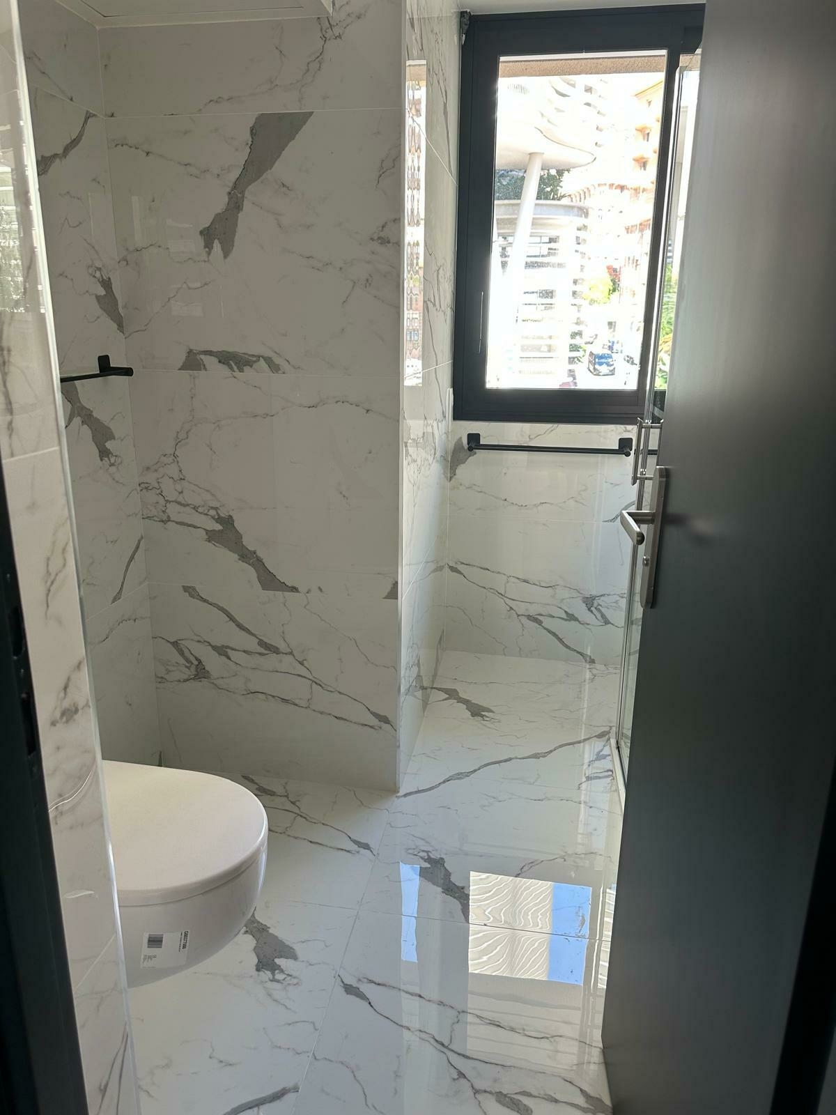 It is comprised of an entrance, a living room overlooking a large terrace, 2 en-suite bedrooms, a separate and equipped kitchen. A cellar complete the property.