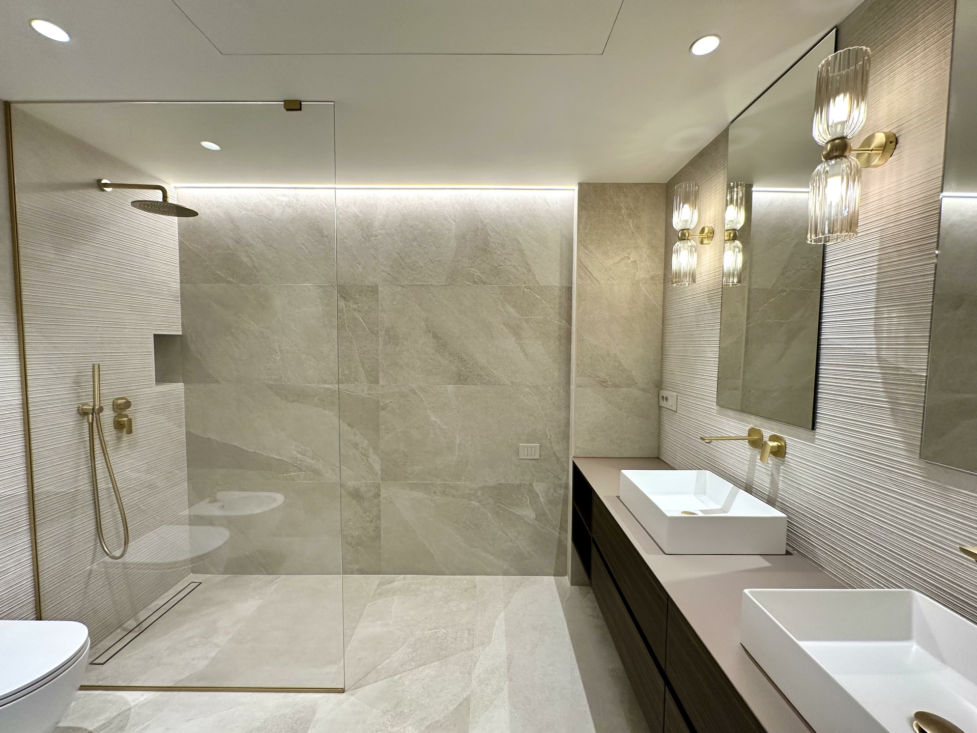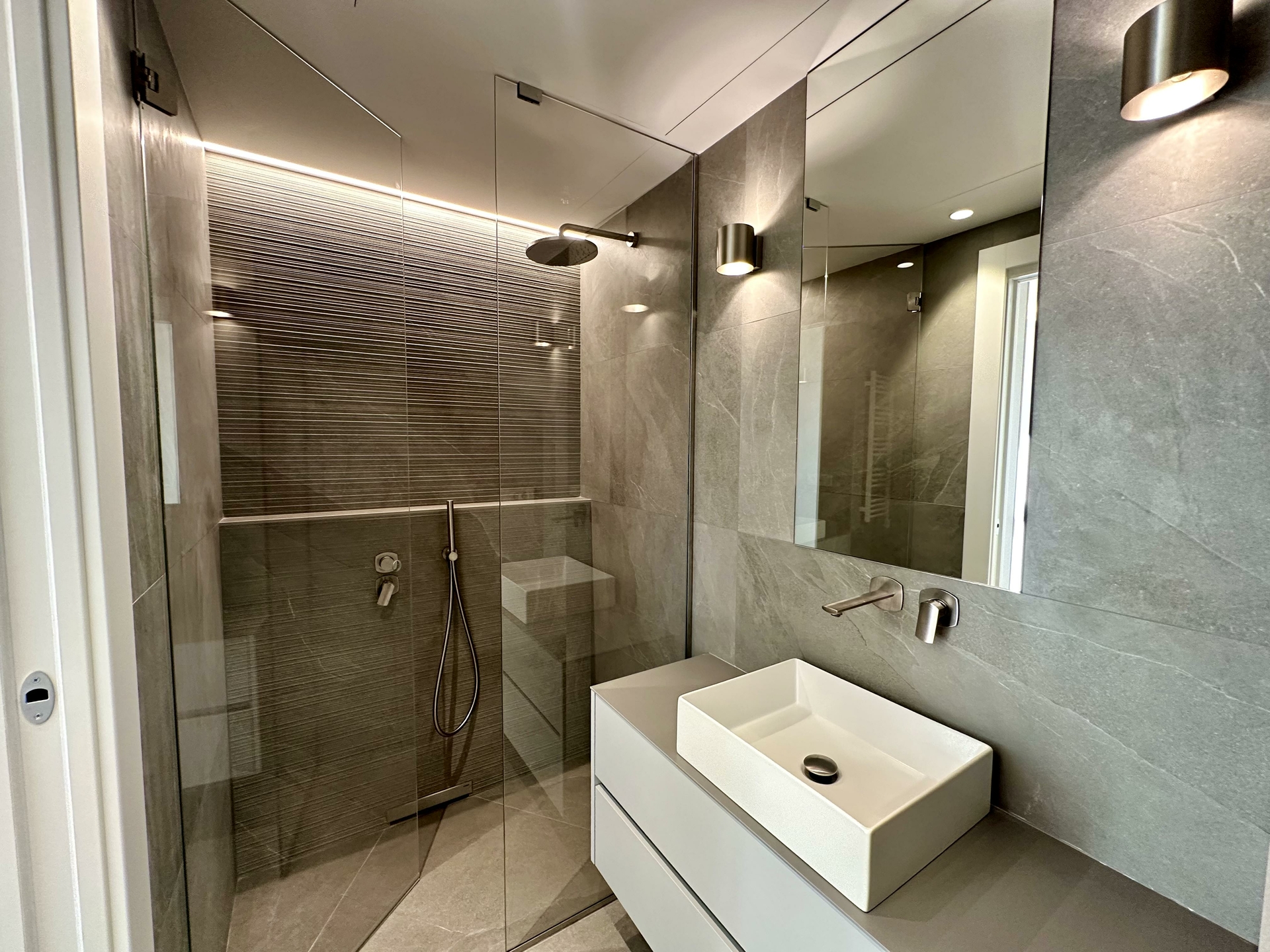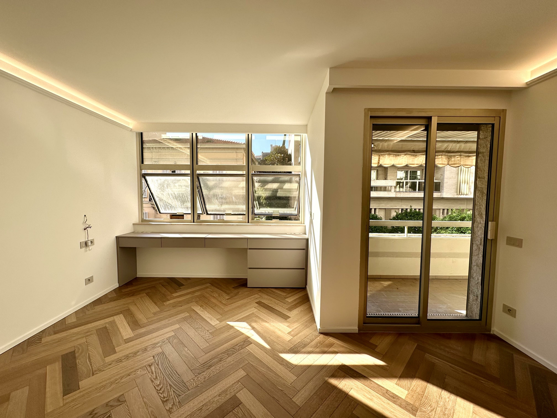 L'appartamento è composto da un ampio soggiorno, una camera matrimoniale con spogliatoio e bagno, una camera da letto con bagno, una cucina indipendente, una toilette separata, una terrazza.