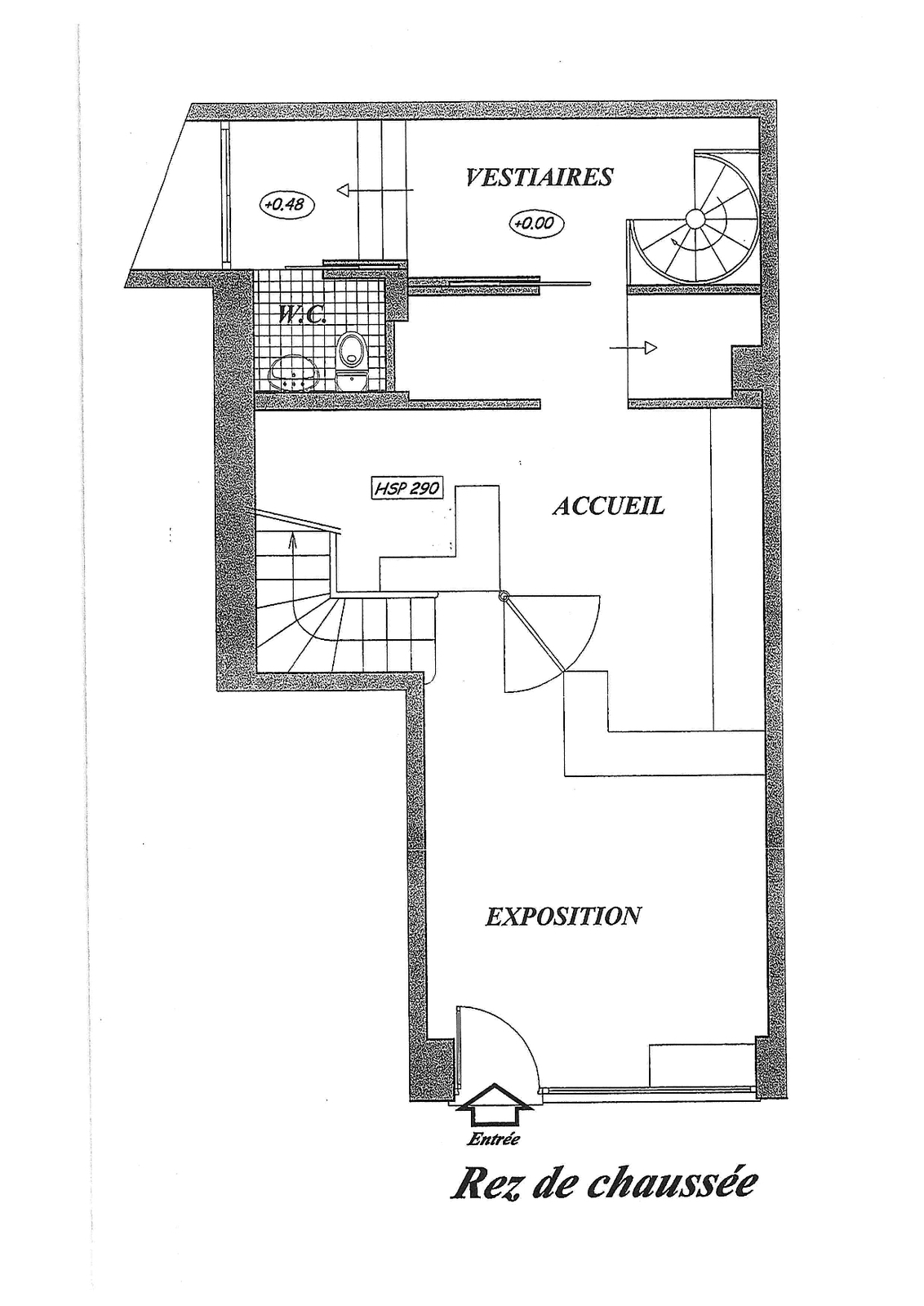 - Piano terra : Superficie di circa 50 m² che si affaccia sulla strada con un'ampia vetrata, che offre un'ottima visibilità.