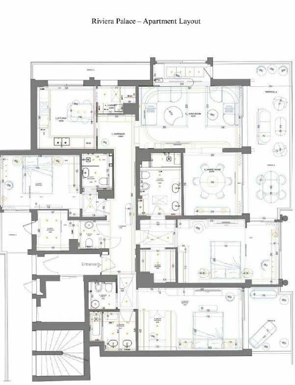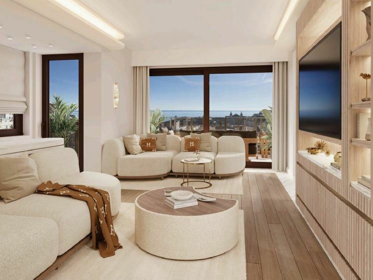 La residenza offre tre ampie camere da letto con bagno privato e cabina armadio, un luminoso doppio salone/sala da pranzo con un elegante bar e un'ampia terrazza con vista sul mare e sul Casinò.