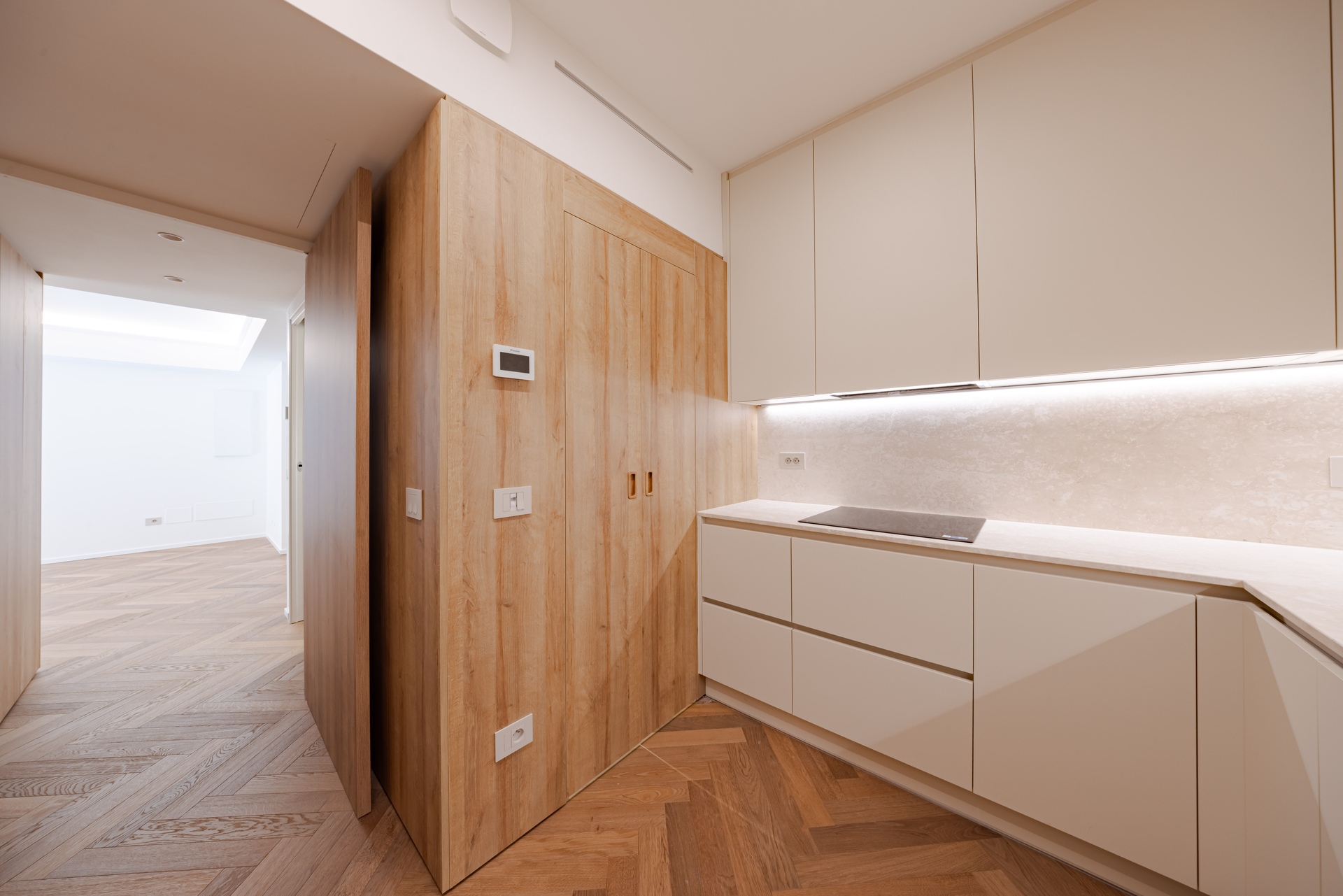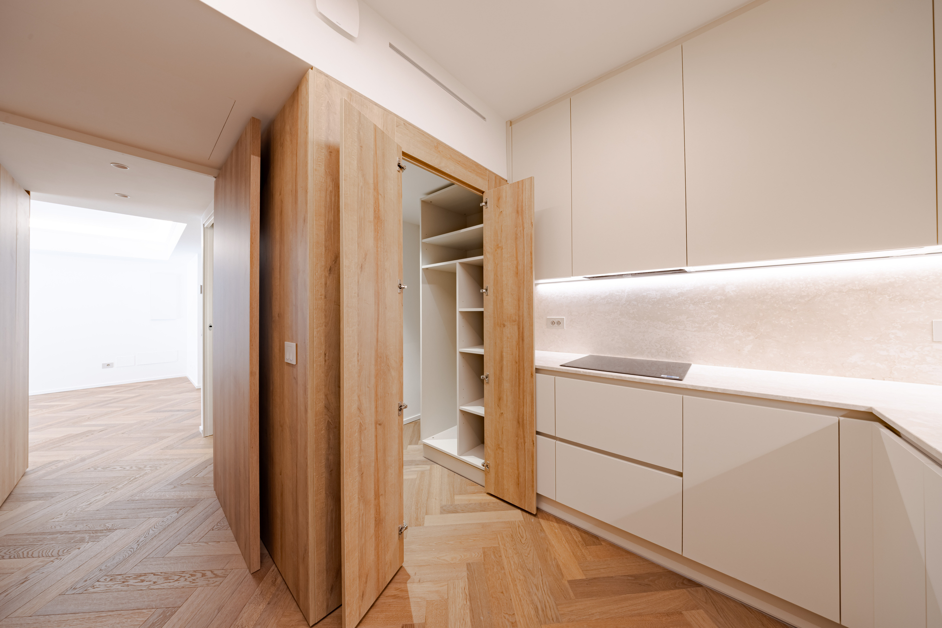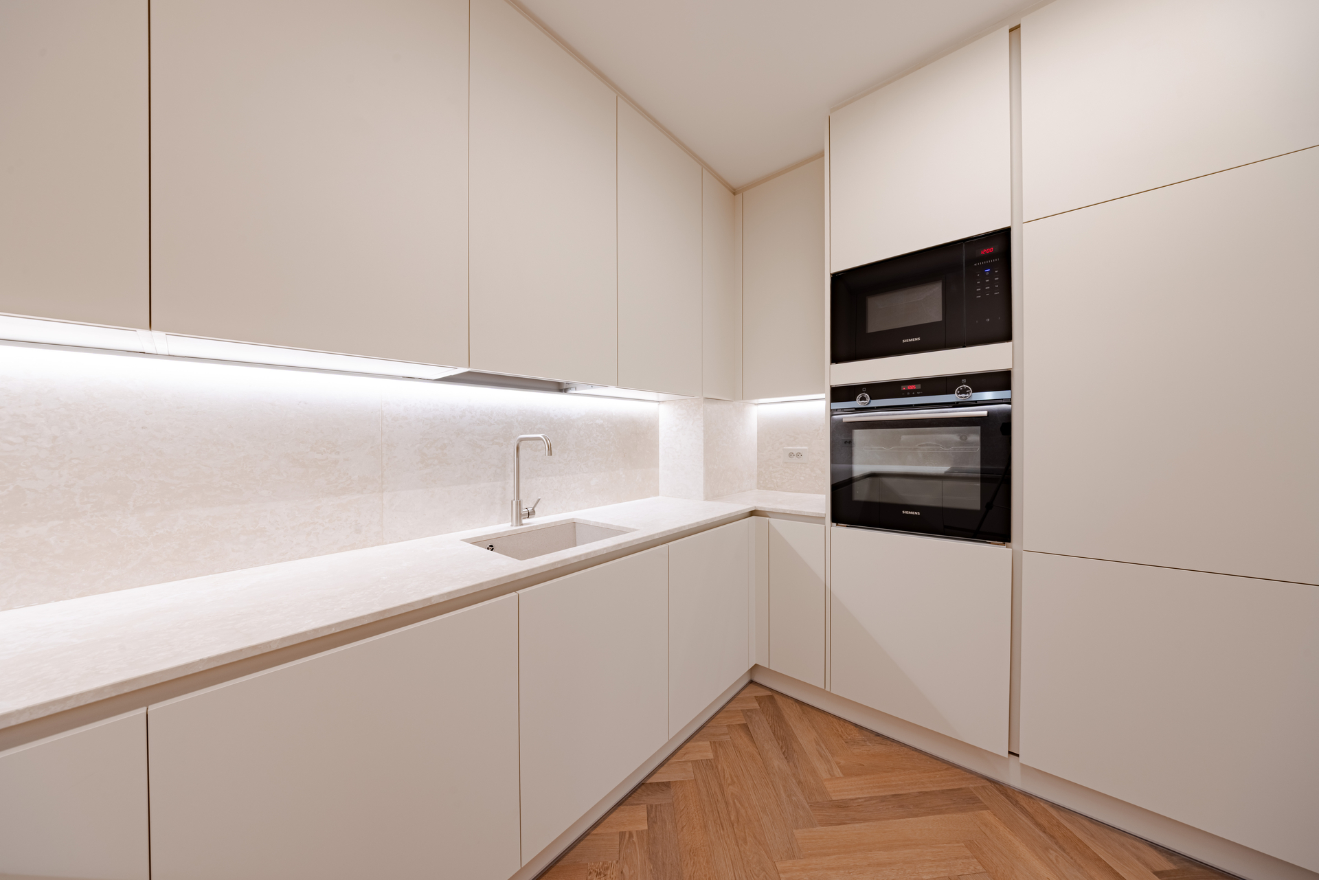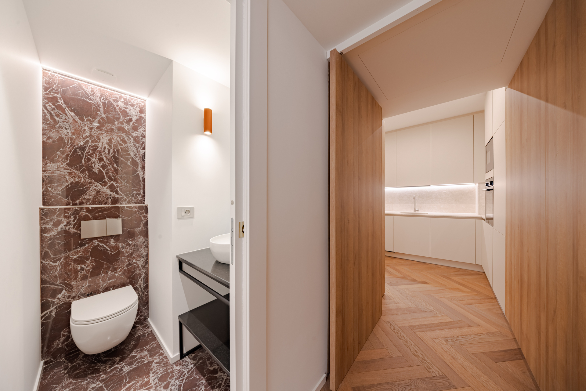 Dalla generosa metratura, è composto da un ampio e luminoso soggiorno con cucina a vista, due camere da letto, due bagni e un piacevole balcone. I materiali e le finiture sono stati scelti con cura per coniugare eleganza e comfort nella vita di tutti i giorni.