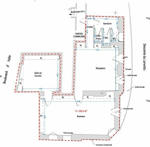 L'immobile è così composto: un ingresso, 2 ampi open-space con abbondanza di ripostiglio, una sala riunioni, un bagno, una doccia.