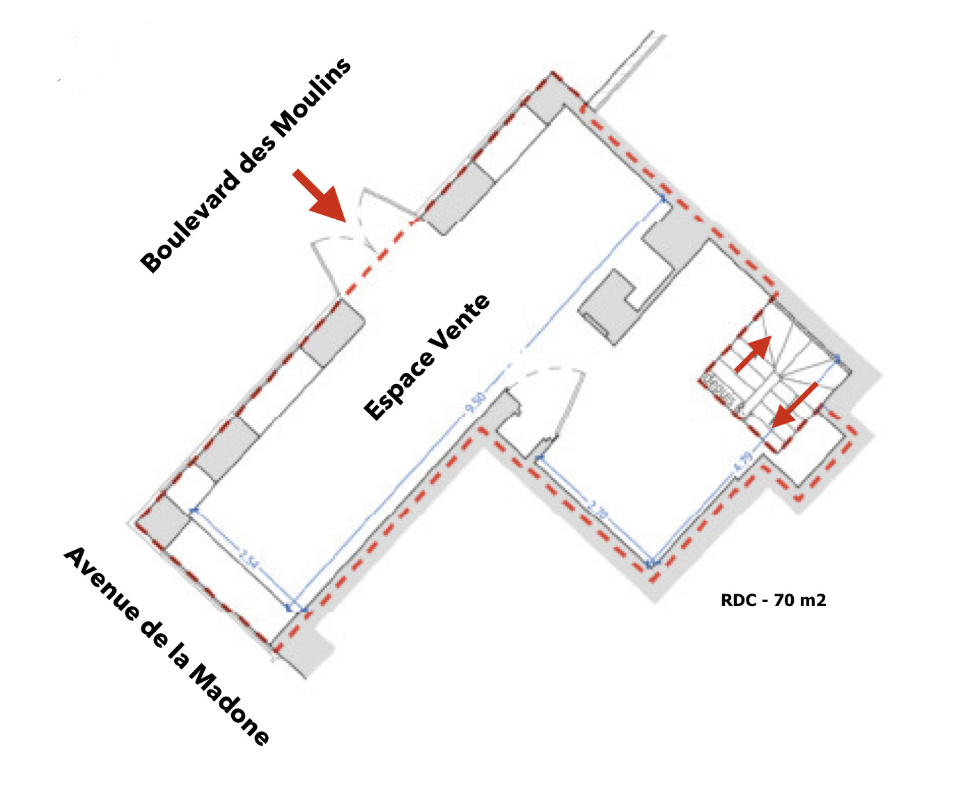Carré d'Or - LOCAL COMMERCIAL sur deux niveaux, idéalement situé à proximité immédiate du Casino