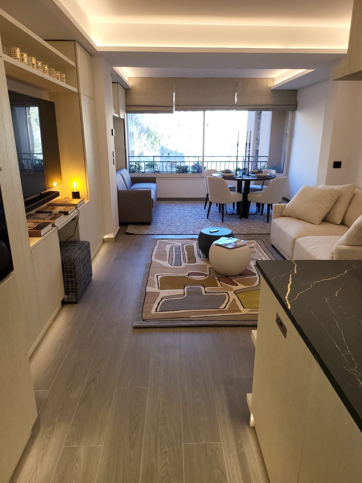 Questo appartamento è composto da un ingresso con deposito e lavanderia integrata, una cucina americana completamente attrezzata aperta su un ampio soggiorno con sala relax e sala da pranzo, oltre a un bagno separato con doccia.
