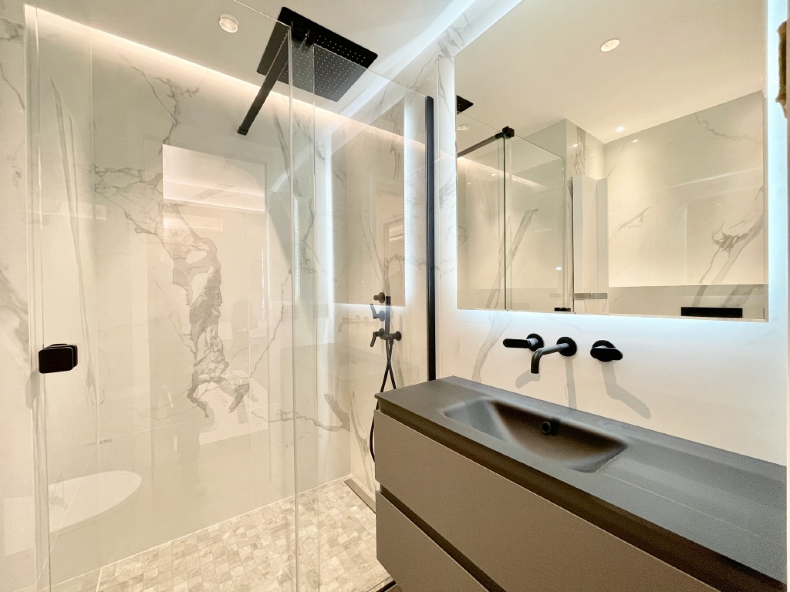 L'appartamento beneficia di aria condizionata reversibile e di numerosi spazi di stoccaggio su misura integrati.