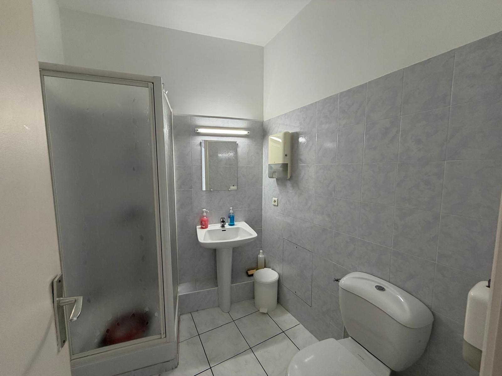Questo ufficio disponibile in vendita è composto da: un ingresso, tre uffici, servizi per gli ospiti e una sala doccia con WC.